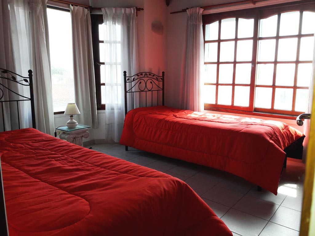 En la planta alta, se ubican 2 habitaciones: una con una cama matrimonial y baño en suite, y la otra con 3 camas individuales. Además, hay un baño completo en esta planta. Las habitaciones están dotadas de amplios placares y luminosos ventanales, ofreciendo un ambiente acogedor y confortable.