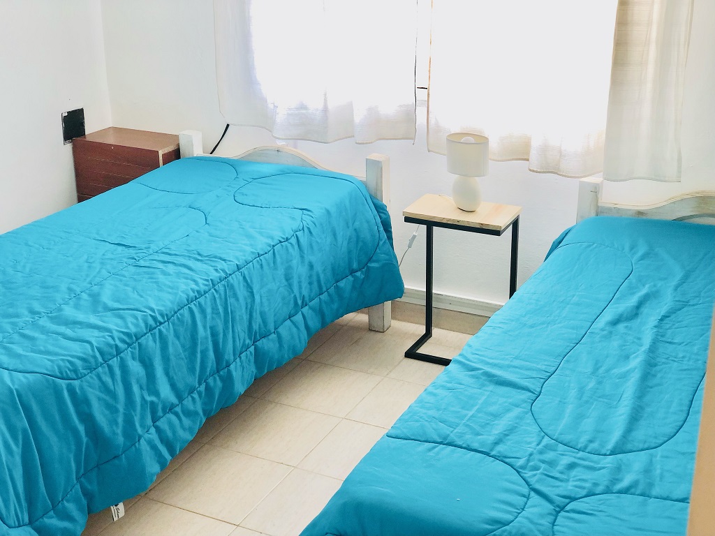La propiedad también dispone de espacio techado para auto, parrilla y un jardín. Las dos habitaciones incluyen una con cama matrimonial somier y otra con dos camas individuales. Como servicios adicionales, ofrece WIFI, TV LED , alarma, cámaras de seguridad y portón eléctrico.