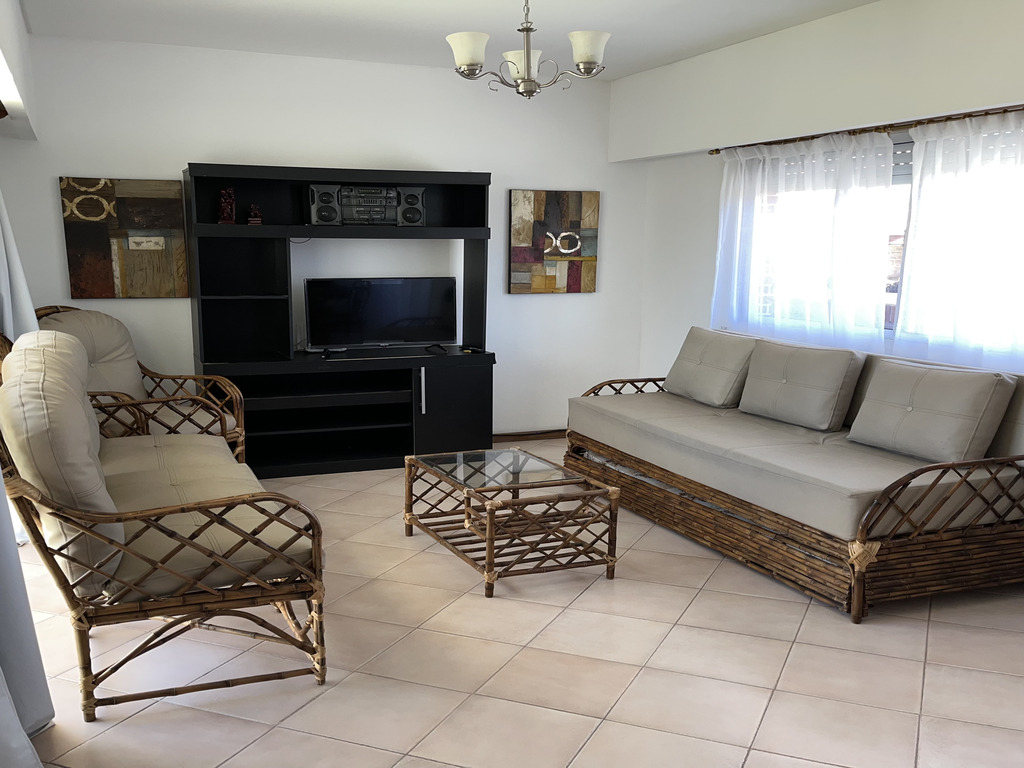 Los departamentos de 3 ambientes ofrecen un amplio comedor con un diván doble que funciona como cama simple adicional. La cocina está completamente equipada con una barra desayunadora y parrilla a gas. Incluye un dormitorio con cama matrimonial y otro con cama individual, así como un baño completo de alta calidad. Además, cada departamento dispone de vajilla completa, microondas, TV con cable y calefacción.